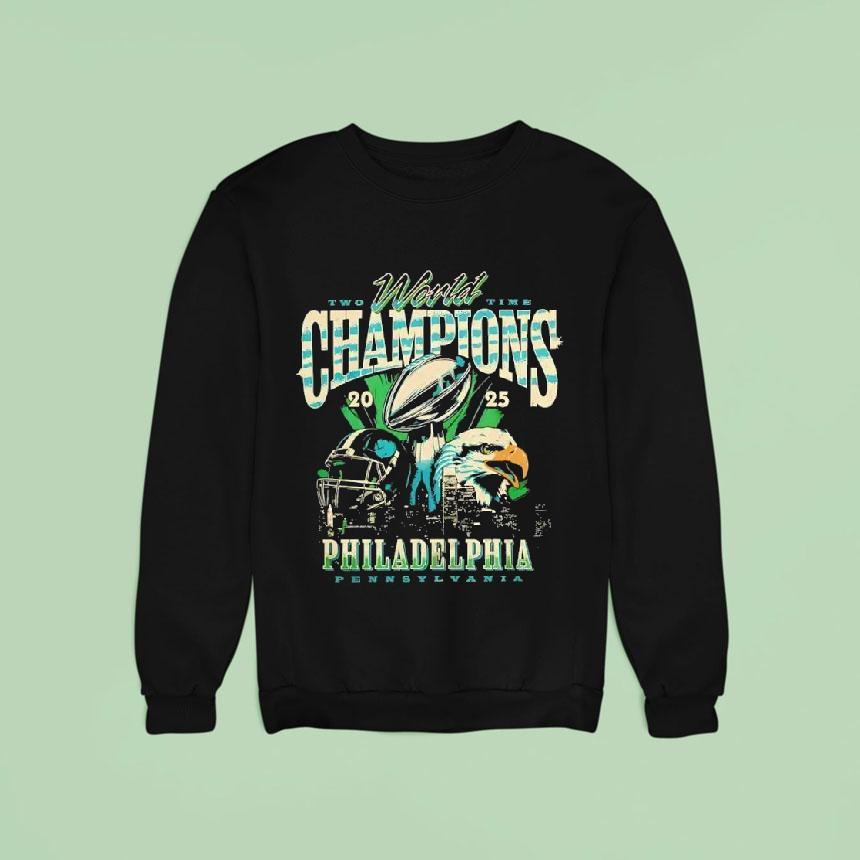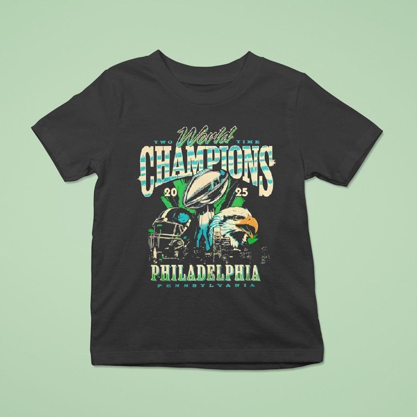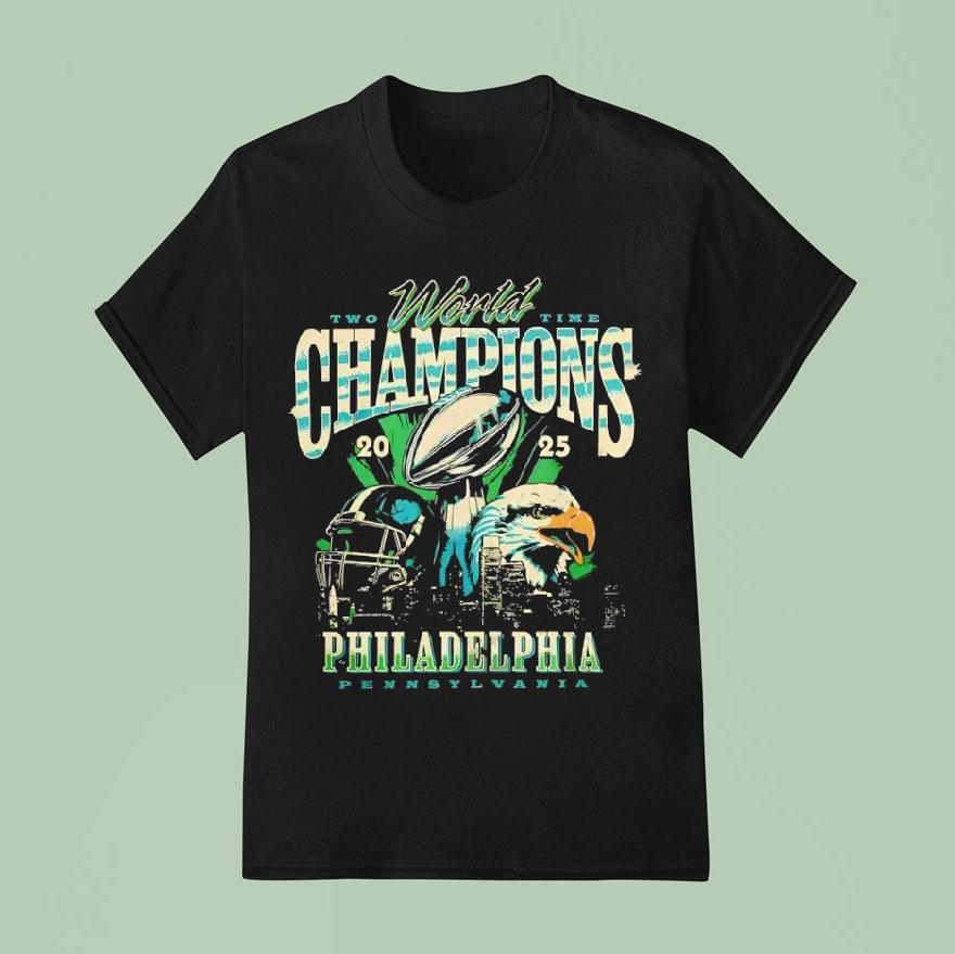 Simple style, maximum impact with Philadelphia Eagles Two Time World Champions 2025 Shirt, “Eagles fans, get ready to celebrate once again as the Philadelphia Eagles have claimed their second consecutive Super Bowl victory in 2025. Show off your team pride with the limited edition Philadelphia Eagles Two Time World Champions 2025 Shirt. Fly high with the champs!”