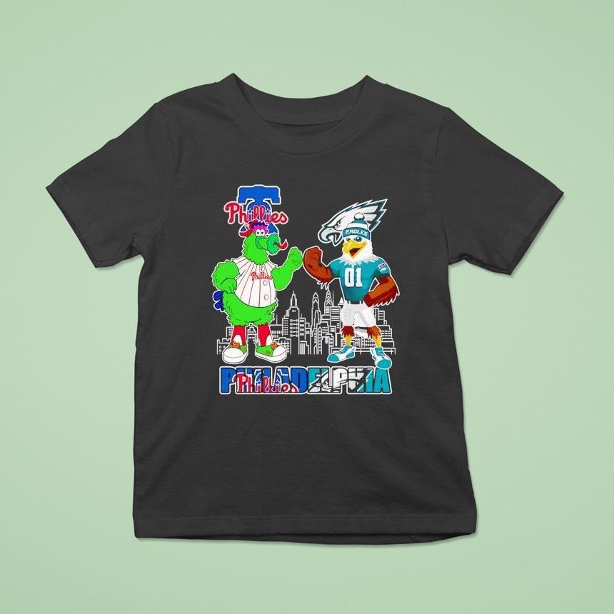 Timeless fashion, cozy fit with Philadelphia Phillies And Philadelphia Eagles Mascot Philadelphia City Skyline Shirt, get ready to showcase your love for Philly sports with the ultimate fan gear – the Philadelphia Phillies and Philadelphia Eagles Mascot Philadelphia City Skyline Shirt. Featuring the iconic mascots and city skyline, this shirt is a must-have for any proud fan of the city’s beloved baseball and football teams.