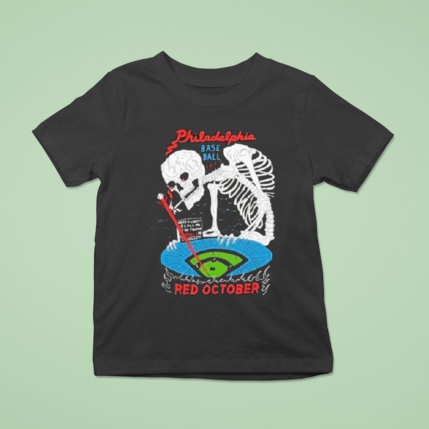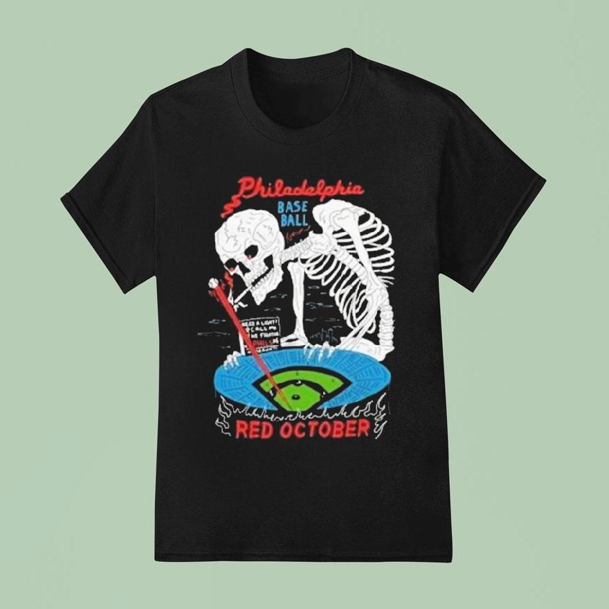 Classic tee, endless possibilities with Philadelphia Phillies Red October Skull Skeleton Shirt, get ready to rock this postseason with the ultimate fan gear – the Philadelphia Phillies Red October Skull Skeleton Shirt! Show off your team pride and get into the spooky spirit of Halloween with this unique and edgy design. It’s time to cheer on the Phillies in style!