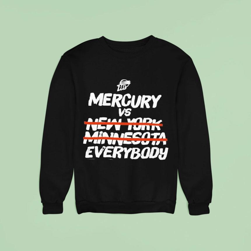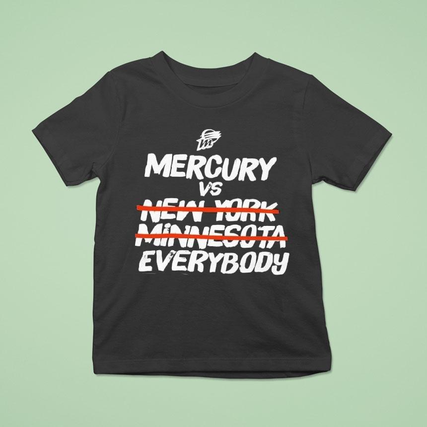 Versatile fashion, timeless appeal with Phoenix Mercury Mercury Vs New York Minnesota Everybody Shirt, are you ready for an epic showdown? The Phoenix Mercury take on the New York Minnesota in a battle for the ages. Show your team spirit with the official Mercury vs New York Minnesota shirt and support your favorite team as they fight for victory on the court.