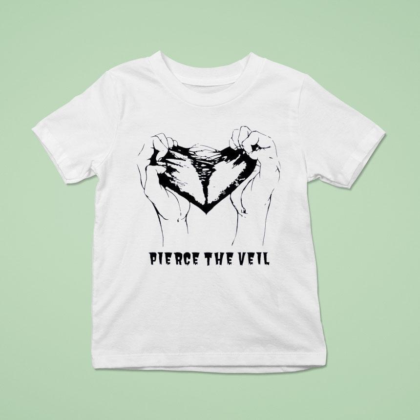 Casual chic, timeless appeal with Pierce The Veil Heart Tear Shirt, get ready to show off your love for the alternative rock band, Pierce The Veil, with their iconic Heart Tear Shirt. This one-of-a-kind design features the band’s signature logo and will surely make a statement at your next concert or casual hangout.