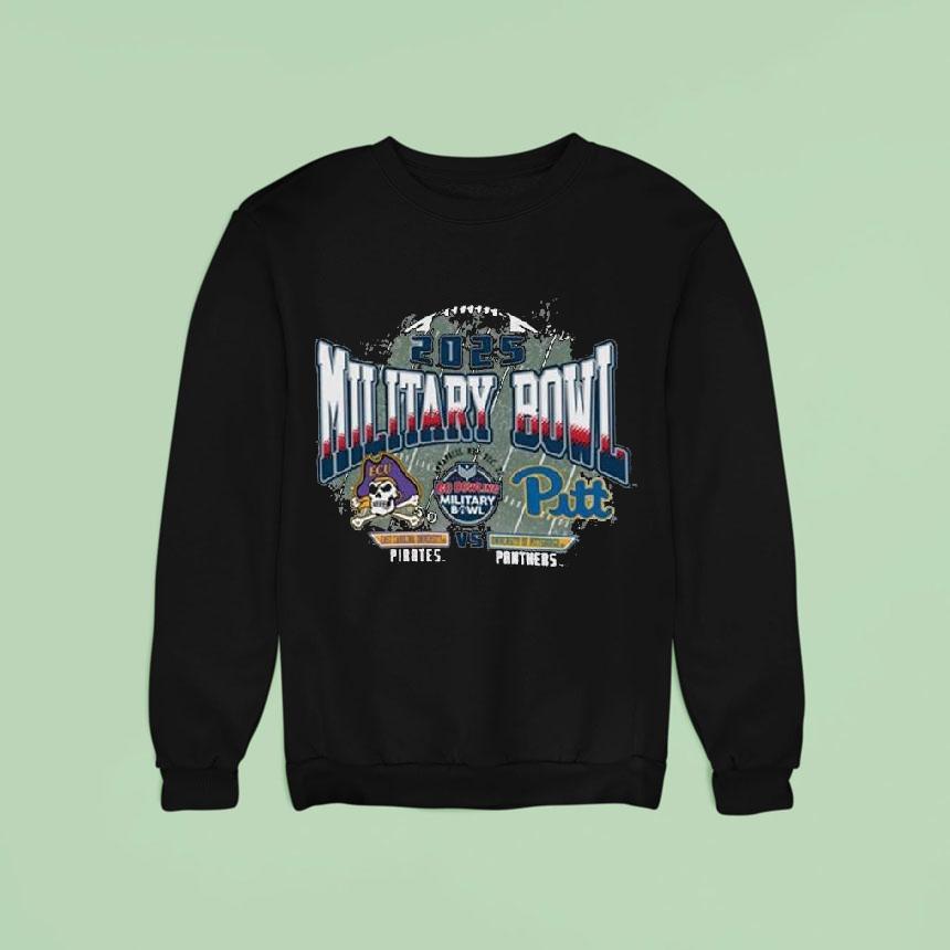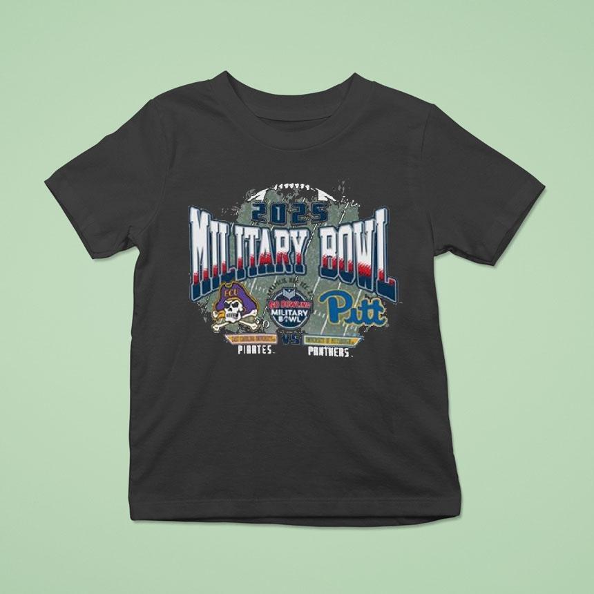 Effortlessly cool with Pittsburgh Panthers Vs East Carolina Pirates 2025 Military Bowl Dueling Helmets Champion Shirt, in the highly anticipated 2025 Military Bowl, the Pittsburgh Panthers and East Carolina Pirates will face off in a showdown that will determine the true champion of the gridiron. Get ready to show your support with the limited edition “Dueling Helmets” champion shirt featuring both teams’ iconic logos.