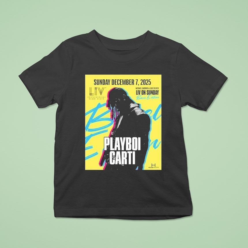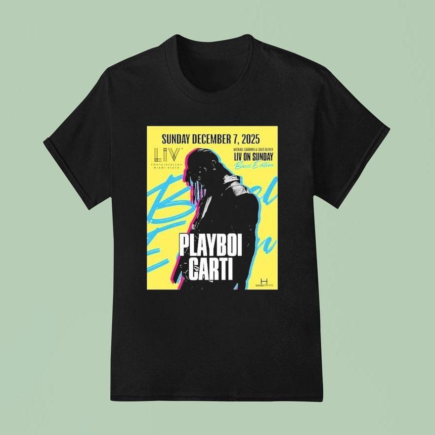 Dress it up, dress it down with Playboi Carti Live At Liv Miami On December 7 2025 Basel Shirt, get ready to turn up with the ultimate trap experience as Playboi Carti takes the stage at Liv Miami on December 7, 2025. This exclusive performance is not one to miss, so don’t forget to rock your best Basel shirt and prepare to vibe all night long.