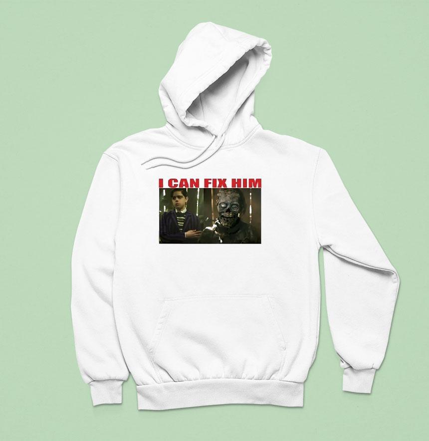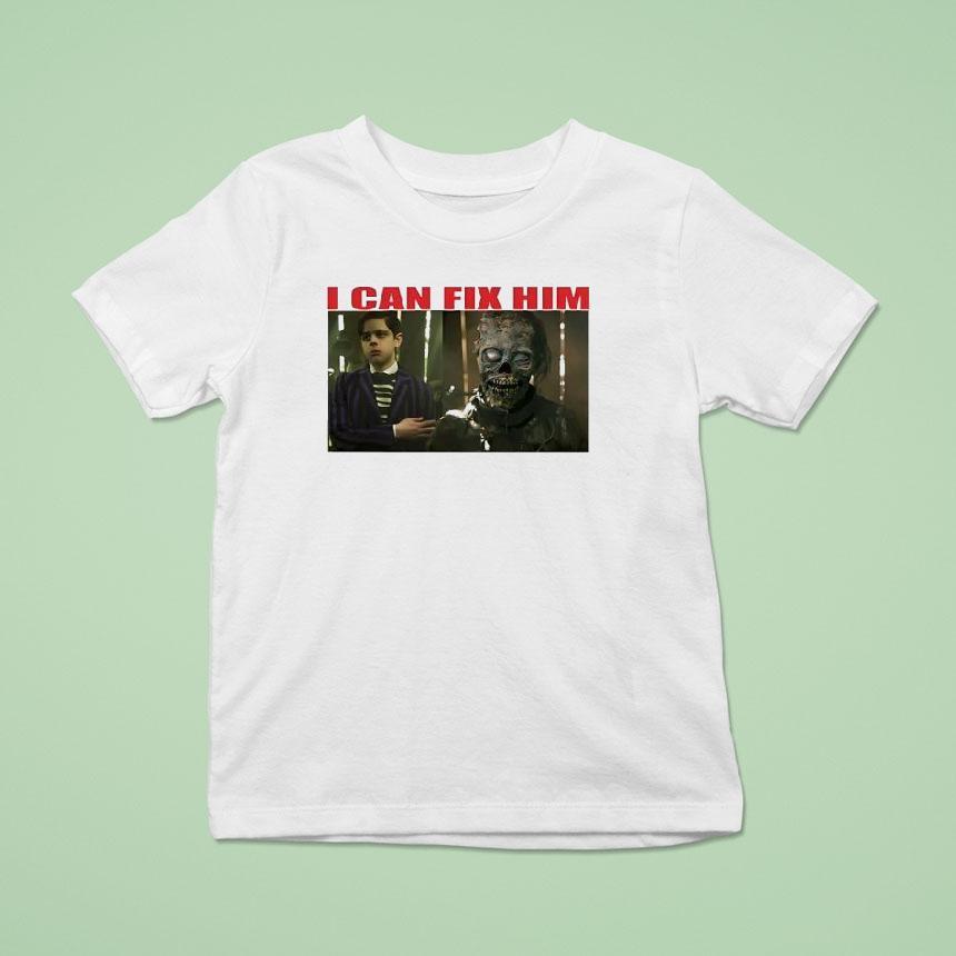 Timeless fashion, cozy fit with Pugsley Addams And Tyler Galpin I Can Fix Him Shirt, pugsley Addams, known for his eccentric style and love for all things macabre, has collaborated with renowned artist Tyler Galpin to create a shirt that captures their shared passion for the unconventional. The “I Can Fix Him” shirt is a must-have for fans of dark and quirky fashion.