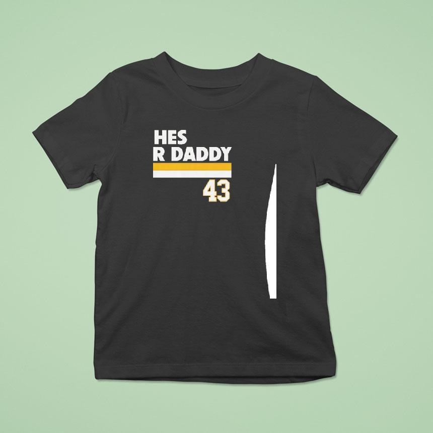 Casual elegance, always with Quinn Hughes Your Daddy 43 Minnesota Wild Hockey Shirt, “Decked out in his Quinn Hughes ‘Your Daddy 43’ Minnesota Wild hockey shirt, this young fan proudly displays his love for both the team and the dynamic defenseman. As the NHL season heats up, his passion only grows stronger for his favorite player and team.”