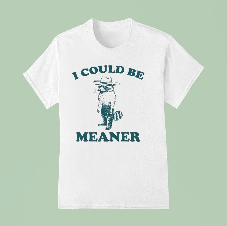 Simple sophistication, all day with Raccoon I Could Be Meaner Shirt, looking to add a dash of attitude to your wardrobe? Look no further than the Raccoon I Could Be Meaner shirt. Featuring a mischievous raccoon graphic and bold lettering, this shirt is perfect for those who like to channel their inner sass.