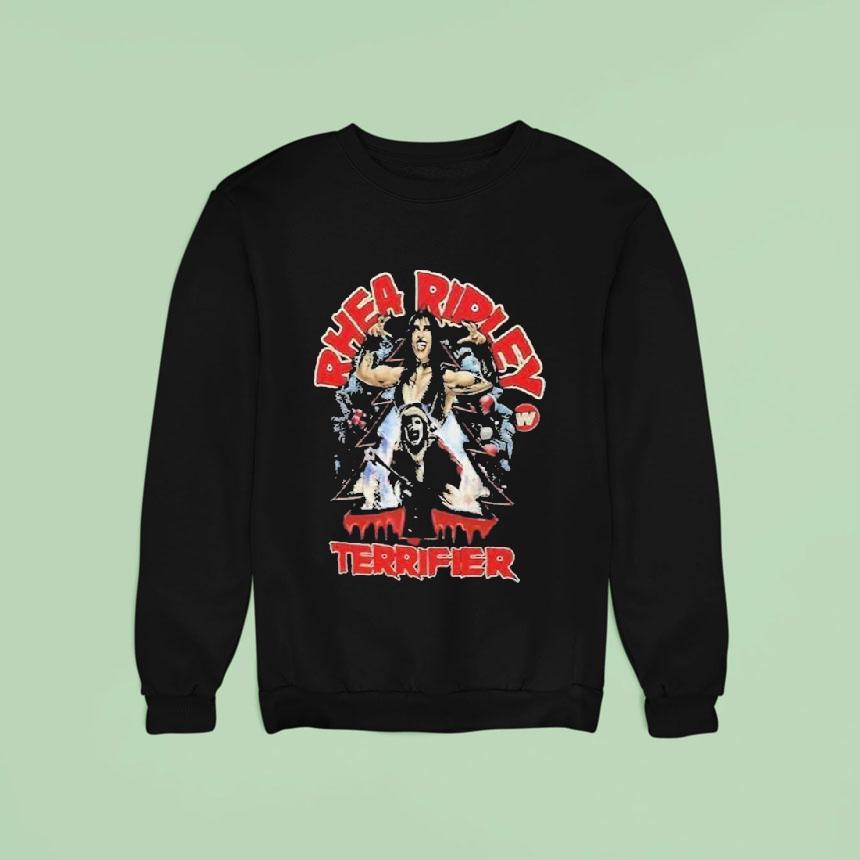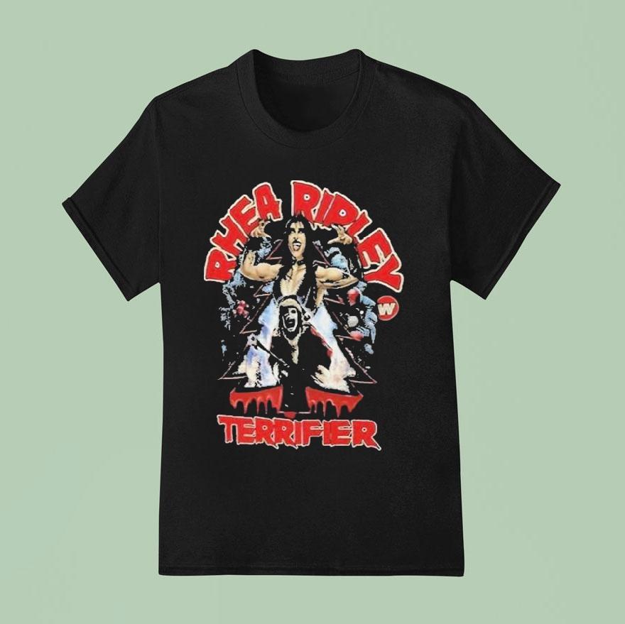 Your style, your signature with Rhea Ripley Terrifier Christmas Shirt, experience a frightfully festive season with Rhea Ripley’s limited edition Terrifier Christmas shirt. Showcasing the WWE star’s signature style and fierce persona, this shirt is a must-have for any fan looking to add a touch of terror to their holiday wardrobe.