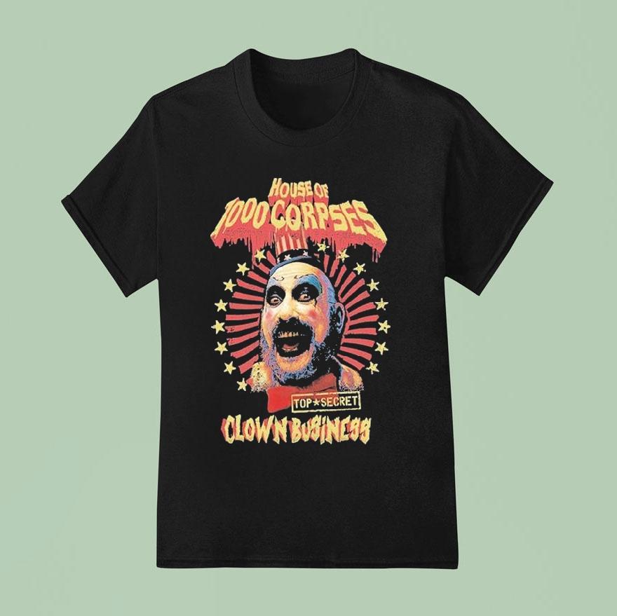 Elevate your casual wardrobe with Rob Zombie Top Secret Clown Business Shirt, “Unleash your inner circus freak with the official Rob Zombie Top Secret Clown Business Shirt. Featuring a twisted design and bold colors, this shirt is the perfect statement piece for any horror fan or rebel looking to add a touch of macabre to their wardrobe.”