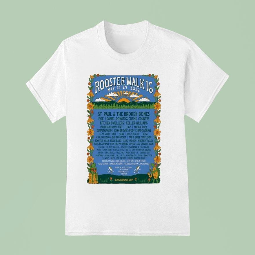 Relaxed elegance, everyday with Rooster Walk 16 Pop’s Farm Martinsville Va May 21-24 2026 Shirt, get ready for four days of live music, camping, and good times at Rooster Walk 16 on Pop’s Farm in Martinsville, VA. From May 21-24, 2026, join us for an unforgettable experience filled with talented artists and a vibrant community. Don’t forget to grab your exclusive Rooster Walk 16 t-shirt!