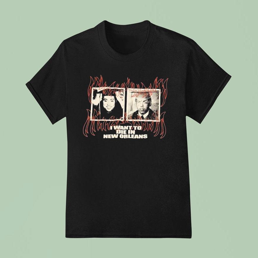 Comfortable fashion choice with Ruby Da Cherry And Scrim I Want To Die In New Orleans Shirt, join the dark and hypnotic world of $uicideboy$ with the Ruby Da Cherry And Scrim I Want To Die In New Orleans Shirt. Featuring their iconic album cover, this shirt is a must-have for any fan and the perfect way to pay homage to the duo’s unique sound and style.