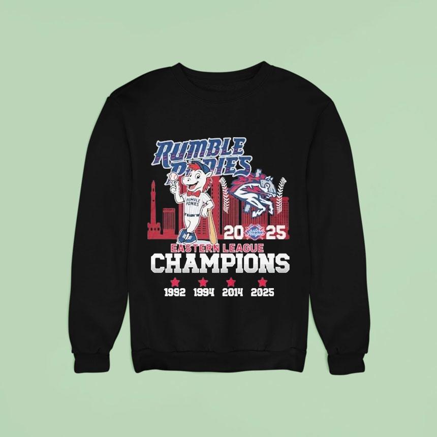 Dress it up, dress it down with Rumble Ponies Eastern League Champions 2025 Mascot Shirt, “Get ready to show your support for the Rumble Ponies, the 2025 Eastern League Champions, with their newest mascot shirt! Celebrate the team’s victory on and off the field with this must-have collector’s item. Don’t miss out on being a part of the excitement!”