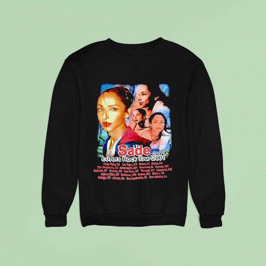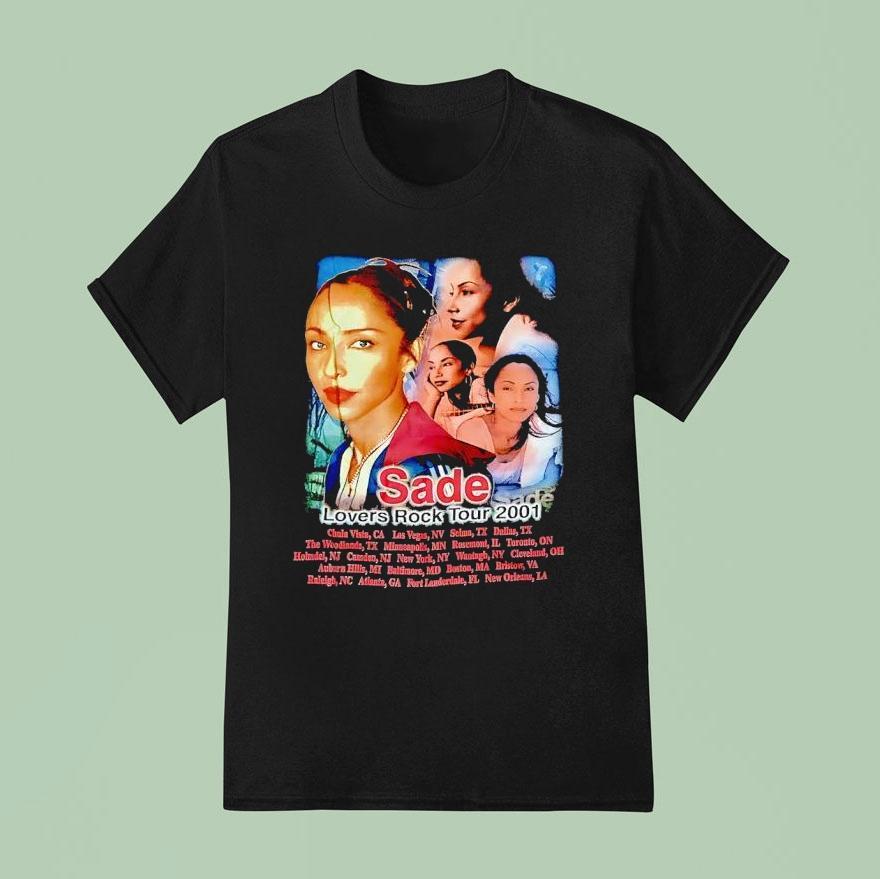 Classic tee, modern comfort with Sade Adu Lovers Rock Tour 2001 Shirt, fans of the iconic English-Nigerian singer, Sade Adu, were thrilled in 2001 when she embarked on her “Lovers Rock” tour, promoting her critically acclaimed album of the same name. And what better way to remember the tour than with a coveted Sade Adu Lovers Rock Tour 2001 shirt.