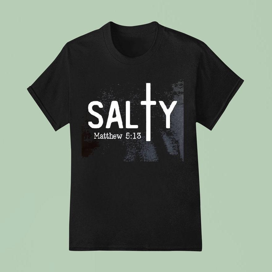 Wearable simplicity, unmatched comfort with Salty Matthew 5:13 Christian Shirt, show off your faith with the Salty Matthew 5:13 Christian shirt. This durable and stylish shirt features the famous Bible verse, reminding us to be the salt of the Earth. Wear it proudly and let your faith shine through in every situation.