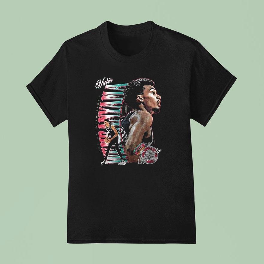 Effortless style, pure comfort with San Antonio Spurs Victor Wembanyama Graphic Vintage Signature Shirt, basketball lovers unite! The San Antonio Spurs Victor Wembanyama Graphic Vintage Signature Shirt is a must-have for die-hard fans. Show your support for the Spurs and their up-and-coming star player with this unique and stylish shirt that features an eye-catching vintage design and Wembanyama’s signature. Get yours now!