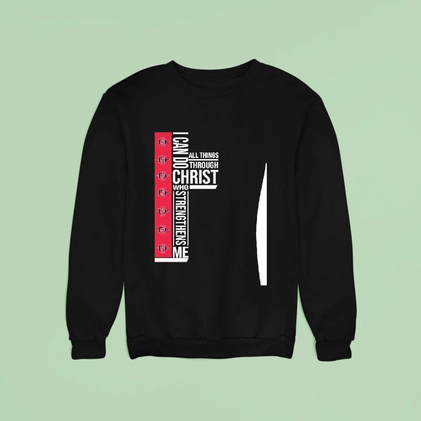Chic minimalism, everyday wear with San Diego State Aztecs I Can Do All Things Through Christ Who Strengthiens Me Shirt, the San Diego State Aztecs are not just a formidable team on the field, they also have a powerful message embodied in their iconic “I Can Do All Things Through Christ Who Strengthens Me” shirt. This motto drives their determination and success both on and off the court.