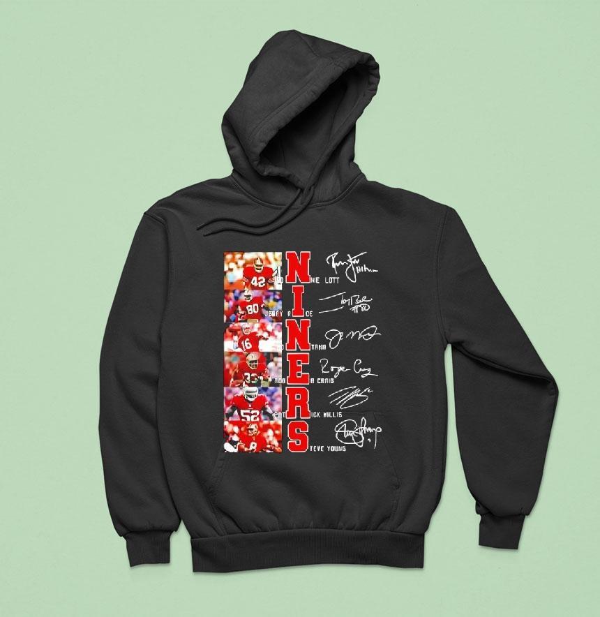 Effortlessly cool with San Francisco 49ers Legends Niners Signatures Of Players Shirt, the San Francisco 49ers have a rich history of legendary players who have left their mark on the game of football. And now, fans can celebrate their favorite Niners by wearing the iconic team colors and signatures of these unforgettable players on the new San Francisco 49ers Legends Niners Signatures Of Players Shirt.