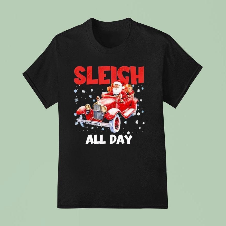 Effortless fashion, endless comfort with Santa Claus Driving Car Sleigh All Day Merry Christmas Shirt, ‘Tis the season for Santa Claus to hit the roads in his trusty car sleigh, delivering gifts and spreading joy to all on this Merry Christmas day. And what better way to celebrate than with a festive Santa Claus Driving Car Sleigh All Day Merry Christmas shirt!