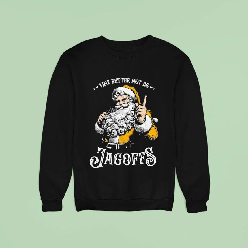 Dress it up, dress it down with Santa Yinz Better Not Be Jagoffs Shirt, with the holiday season quickly approaching, it’s time to spread some Pittsburgh pride with the Santa Yinz Better Not Be Jagoffs shirt. Show off your love for the Steel City and warn Santa Claus not to mess with Pittsburghers in this festive and humorous shirt.