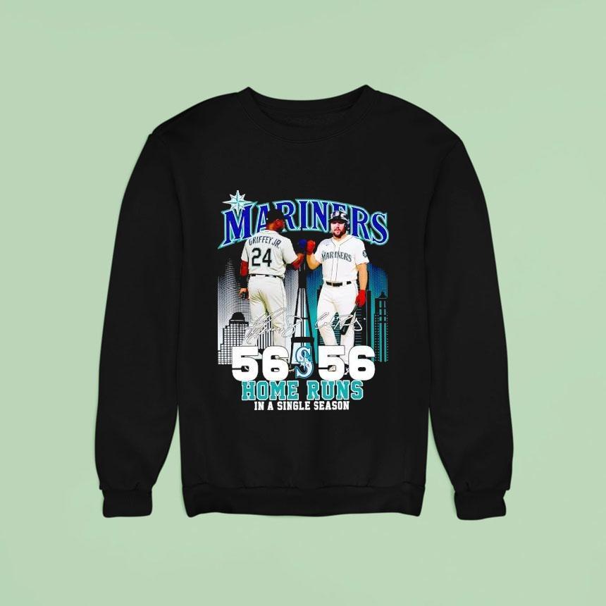 Easy-going style staple with Seattle Mariners City Skyline Griffey Jr And Cal Raleigh Home Runs In A Single Season Signatures Shirt, the Seattle Mariners have captured the hearts of their city with their impressive skyline backdrop, signature Griffey Jr and Cal Raleigh home run moments, and a new fan favorite – the exclusive season signatures shirt. Join in on the excitement and show your Mariners pride with this iconic piece of apparel.