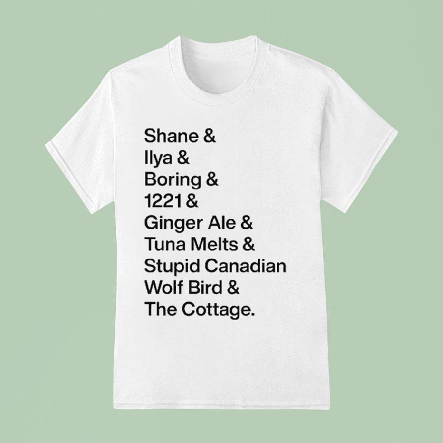 Everyday style, unmatched comfort with Shane Ilya Boring 1221 Ginger Ale Tunal Melts Stupid Canadian Wolf Bird The Cottage Iconic Words Shirt, “Meet Shane Ilya Boring, a unique individual known for his love of 1221 Ginger Ale, Tunal Melts, and his Stupid Canadian Wolf Bird t-shirt. But beyond his eccentricities, he holds a special connection to The Cottage, filled with iconic words that inspire and define him.”