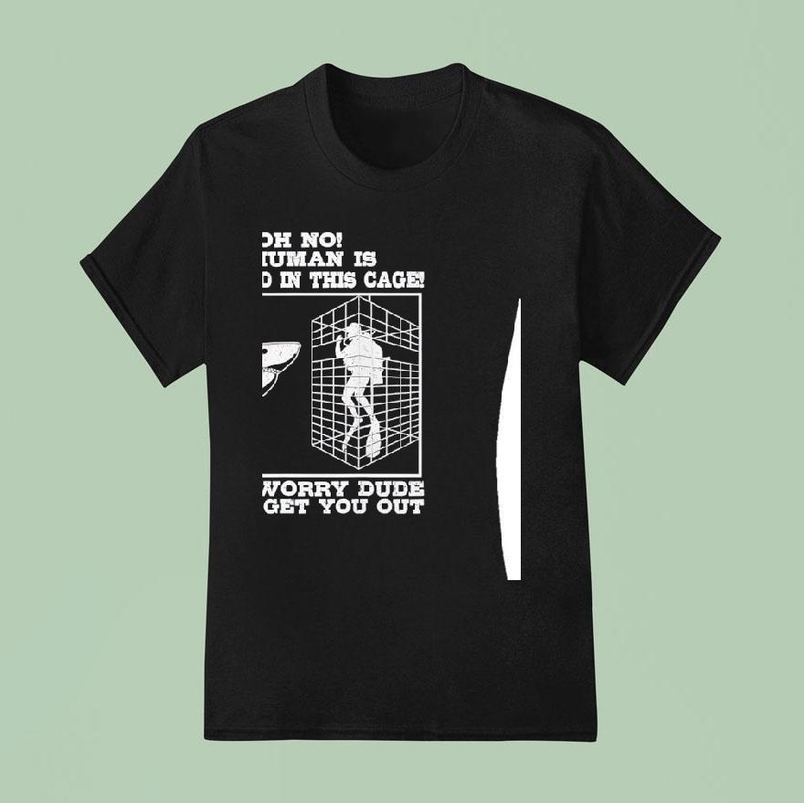 Chic comfort, all day with Shark Oh No A Human Is Trapped In This Cage Don’t Worry Dude I Will Get You Out Shirt, as the waves crashed against the boat, a terrifying realization hit them – a human was trapped inside a shark cage. But with determination and bravery, their friend reassured them, “Don’t worry dude, I’ll get you out.” The “Shark Oh No” t-shirt never meant more than in that moment.