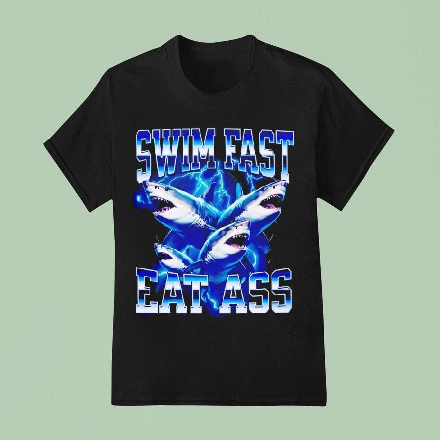 Relaxed elegance, everyday with Shark Swim Fast Eat Ass Shirt, get ready to make a splash with the ultimate summer shirt – the Shark Swim Fast Eat Ass shirt! Perfect for beach days and pool parties, this shirt is both stylish and humorous. So, grab one now and show off your love for sharks in a fun and unique way.