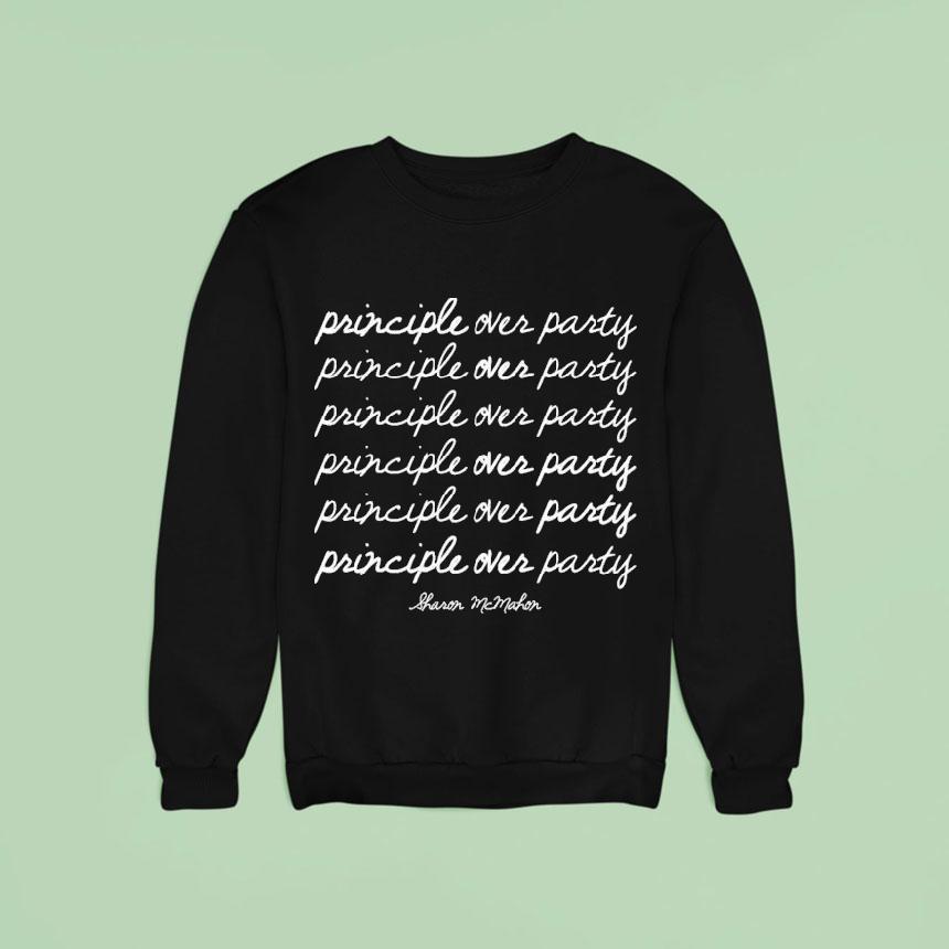 Chic minimalism, always with Sharon Mcmahon Principle Over Party Shirt, introducing the newest addition to your wardrobe – the Sharon Mcmahon Principle Over Party Shirt. Designed to make a bold statement, this shirt symbolizes the importance of standing by your principles above any political affiliation. Express your values with style and confidence.
