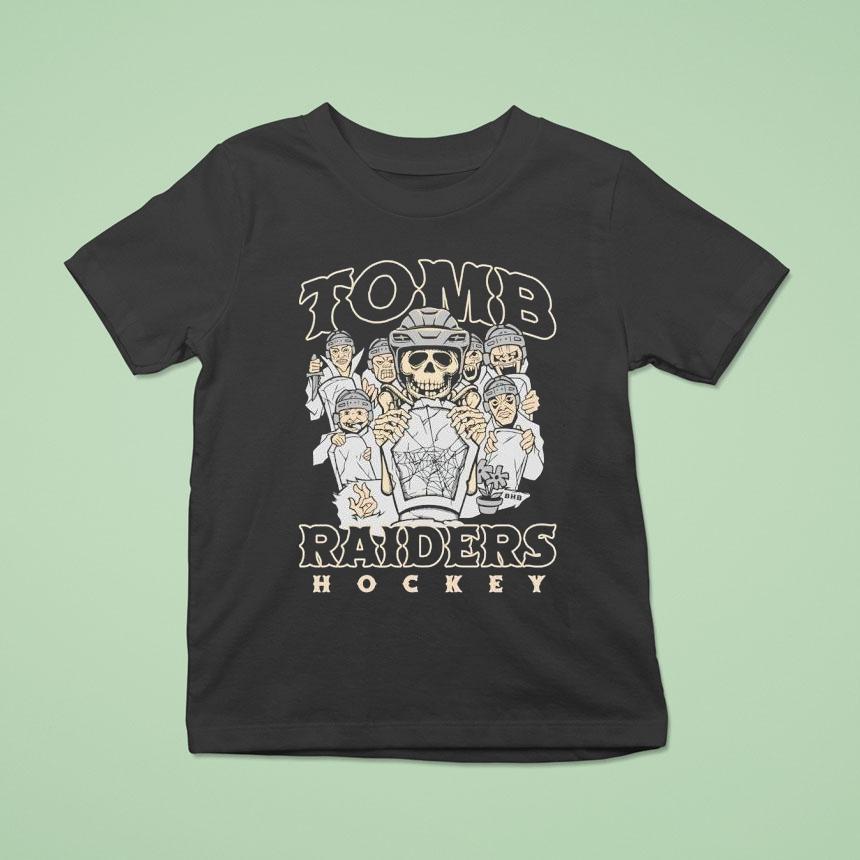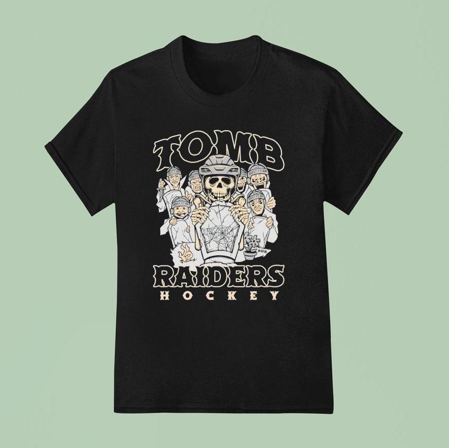 Simple style, maximum impact with Skeleton Tomb Raiders Hockey Halloween Shirt, get ready to steal the spotlight on and off the ice this Halloween with the Skeleton Tomb Raiders Hockey shirt. This spooktacular shirt is the perfect combination of bone-chilling and sporty, making it a must-have for any hockey fanatic looking to score a winning costume this year.
