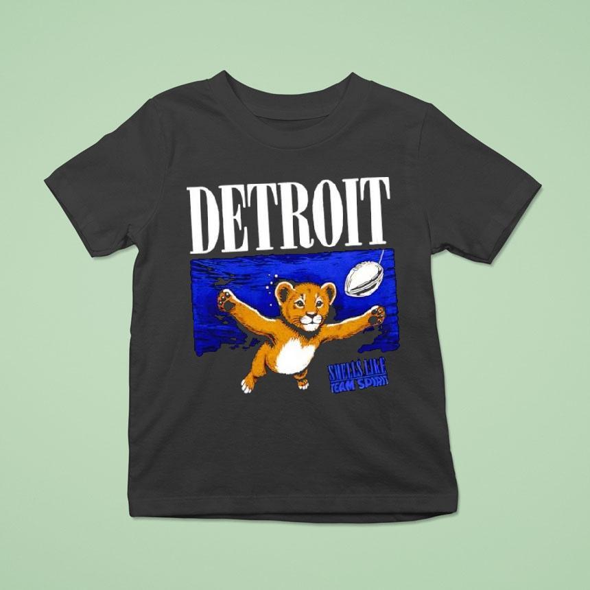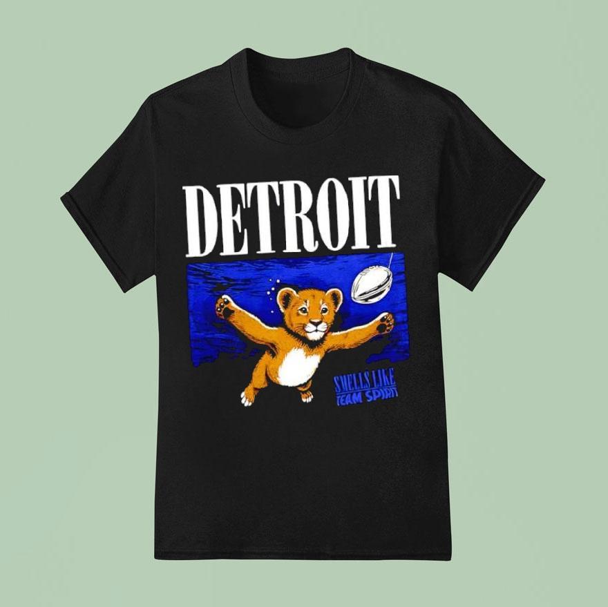 Uncomplicated style choice with Smells Like Team Spirit Detroit Lions Shirt, “Get ready to show some serious team spirit with the Detroit Lions shirt! With its bold blue and silver colors and iconic lion logo, this shirt not only looks great but also smells like victory. Show your love for the Lions on and off the field.”