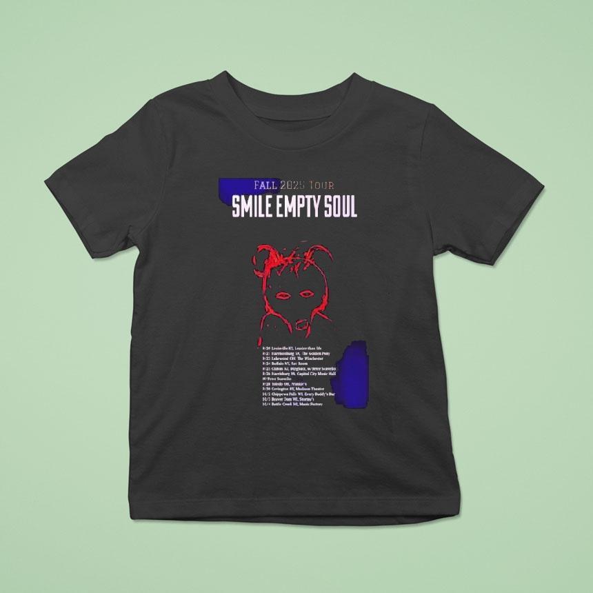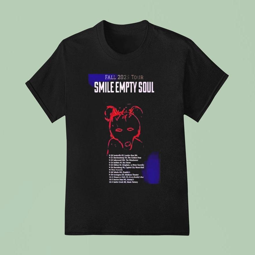 Classic tee, modern vibes with Smile Empty Soul Fall Tour 2025 Dates Shirt, get ready to rock out with your favorite alternative band, Smile Empty Soul, on their highly anticipated Fall Tour 2025. Don’t forget to grab your limited edition tour dates shirt as a memento of an unforgettable night filled with raw energy and electrifying performances.