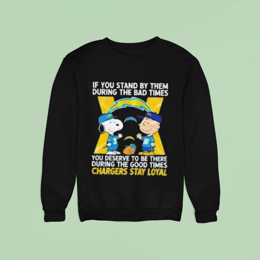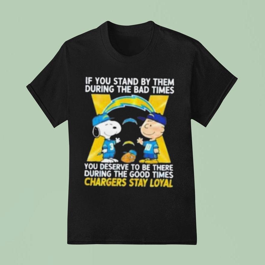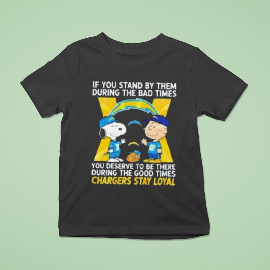 Casual comfort, chic look with Snoopy And Charlie Brown If You Stand By Them During The Bad Times You Deserve To Be There During The Good Times Los Angeles Chargers Stay Loyal Shirt, snoopy and Charlie Brown have been iconic symbols of friendship and loyalty since their creation. Just like the bond between these beloved characters, the Los Angeles Chargers and their fans share a special connection. Through ups and downs, those who stand by them during tough times deserve to celebrate during the good times, and what better way to show that loyalty than with the official “Stay Loyal” shirt.
