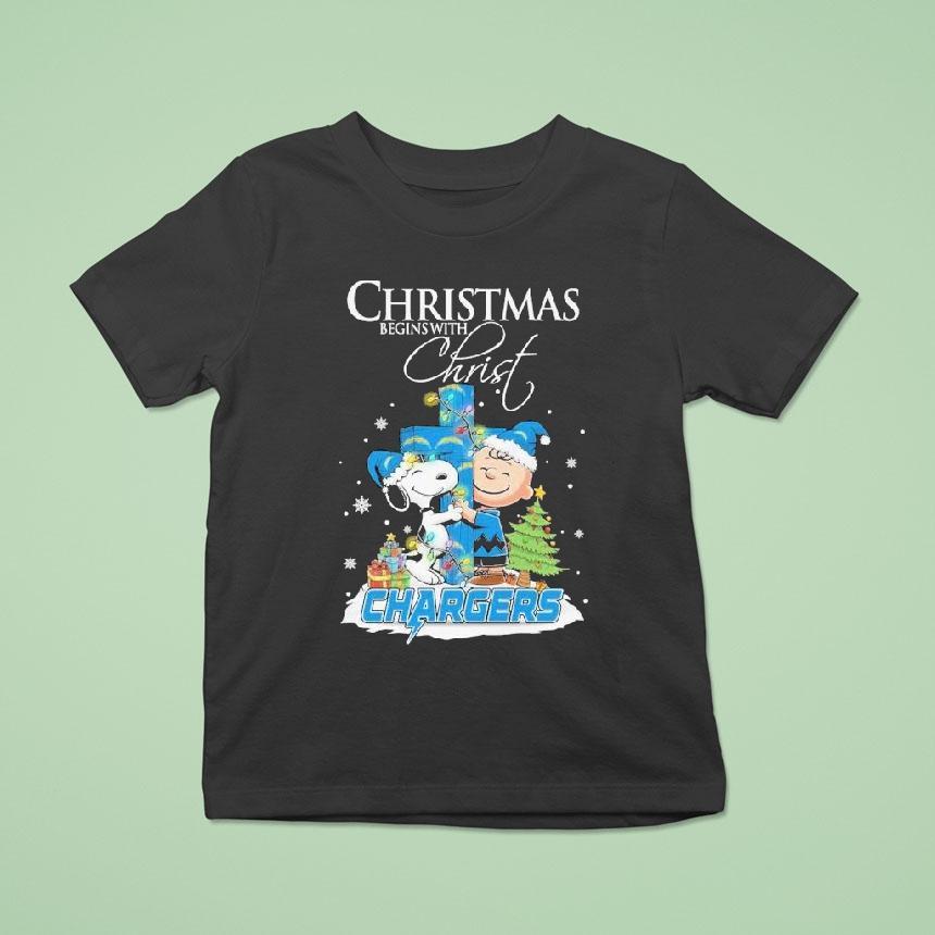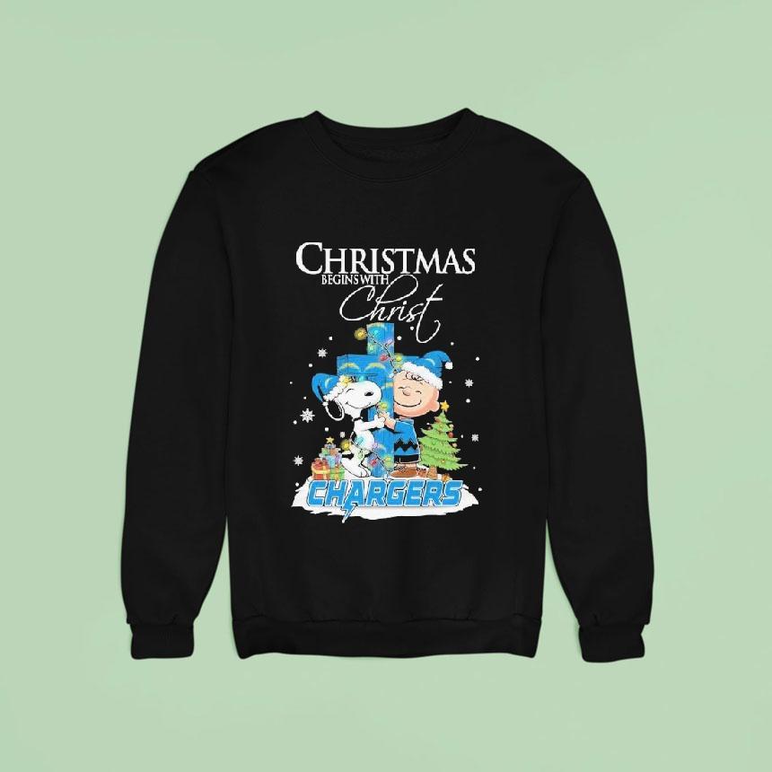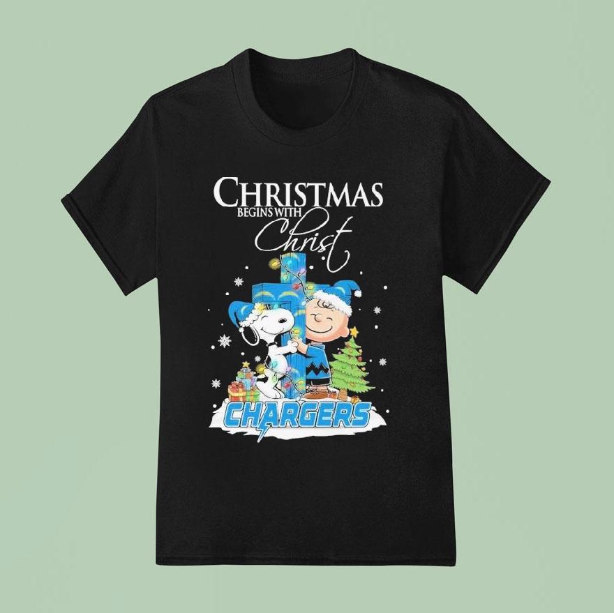 Wardrobe essential, always chic with Snoopy And Charlie Brown The Peanuts X Los Angeles Chargers Merry Christmas Begins With Christ Shirt, get ready to celebrate Christmas with a touch of nostalgia and sports spirit! The latest Snoopy And Charlie Brown The Peanuts X Los Angeles Chargers Merry Christmas Begins With Christ Shirt is here, blending the beloved cartoon characters with the NFL team. Spread holiday cheer and show your love for both in one festive shirt.