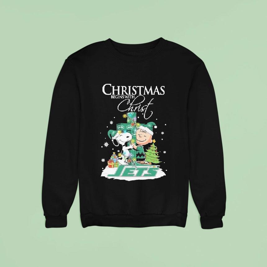 Chic simplicity, everyday charm with Snoopy And Charlie Brown The Peanuts X New York Jets Merry Christmas Begins With Christ Shirt, get ready to celebrate the holiday season in style with the iconic duo of Snoopy and Charlie Brown from The Peanuts and the New York Jets! Spread the message of love and joy with the limited edition Merry Christmas Begins With Christ shirt, perfect for any Peanuts fan.
