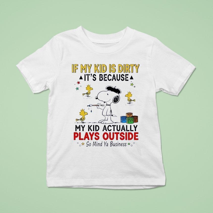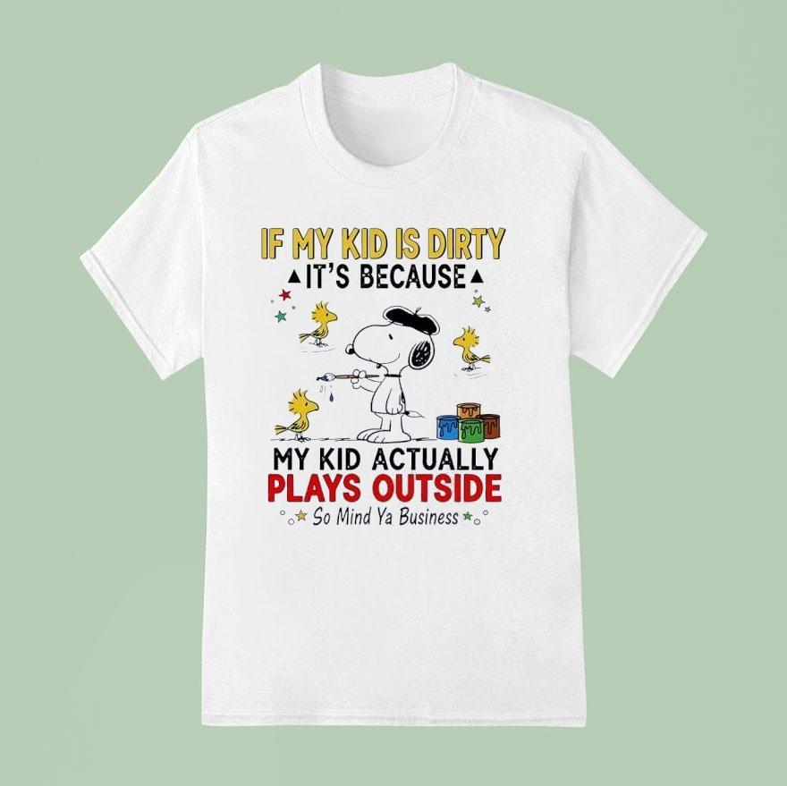 Timeless fashion, cozy fit with Snoopy And Woodstock If My Kid Is Dirty It’s Because My Kid Actually Plays Outside So Mind Ya Business Shirt, snoopy and Woodstock are beloved cartoon characters known for their mischievous adventures. But if your child is wearing a shirt that says “If My Kid Is Dirty It’s Because My Kid Actually Plays Outside So Mind Ya Business,” you know they’re getting plenty of playtime and you shouldn’t judge.