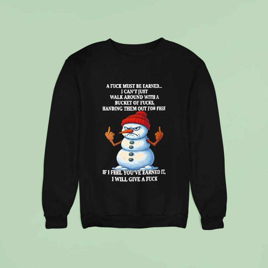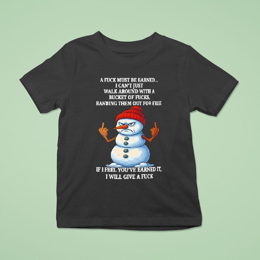 Casual luxury, anytime wear with Snowman A Fuck Must Be Earned I Can’t Just Walk Around With A Bucket Of Fucks Handing Them Shirt, as the winter season approaches and the snow begins to fall, the concept of a snowman comes to mind. However, in this world, a snowman must earn the title of “fuck” as it cannot just be handed out freely. This raises the question, what exactly does it take to be a fuck-worthy snowman?