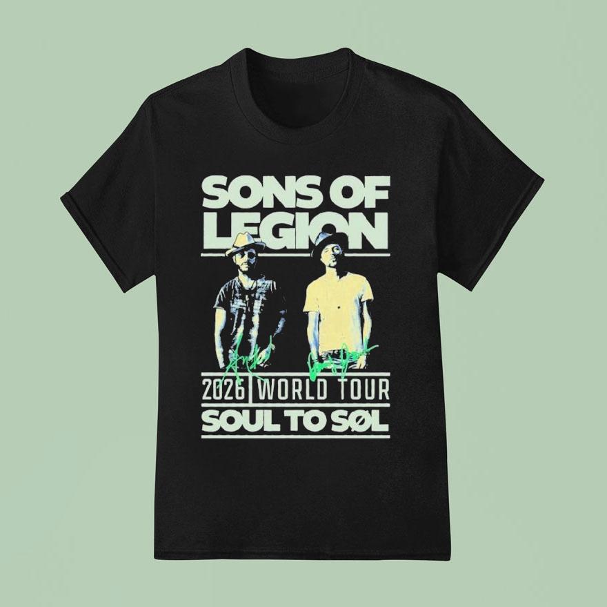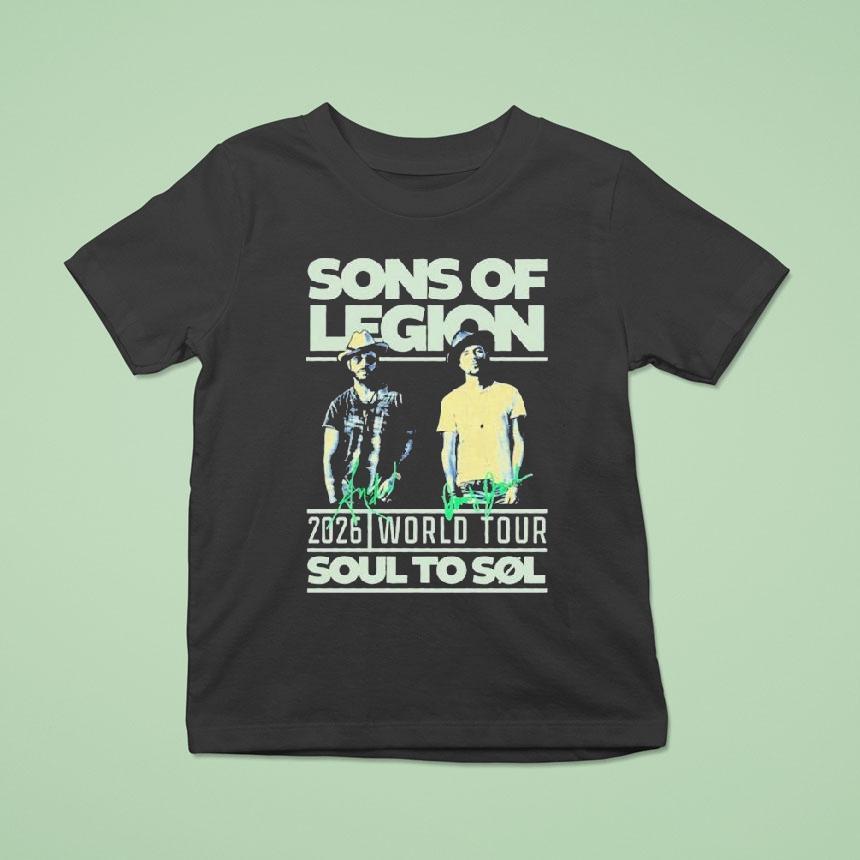 Elevate your casual look with Sons Of Legion 2026 World Tour Soul To Sol Shirt, “Sons of Legion is back and ready to rock the world once again with their highly anticipated 2026 World Tour. And what better way to celebrate their return than with the limited edition Soul To Sol shirt, featuring tour dates and an electrifying design.”