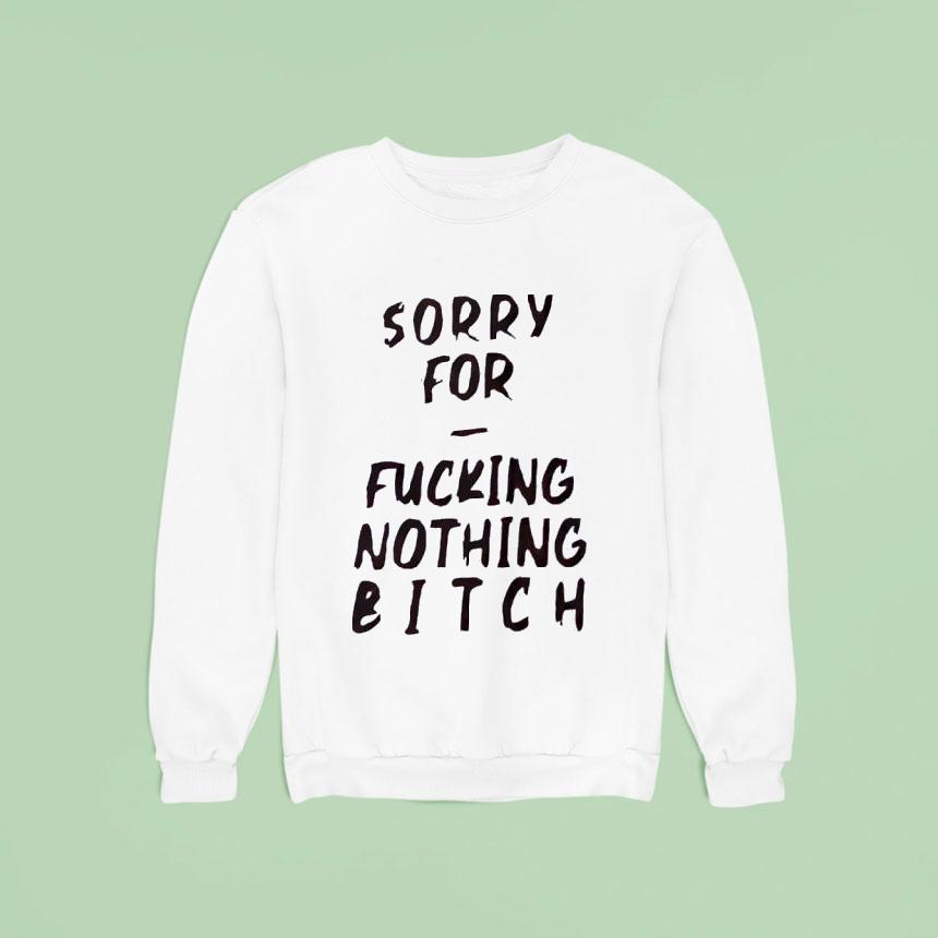 Staple piece, endless possibilities with Sorry For Fcking Nothing Btch Shirt, “Looking for a bold and unapologetic statement piece? Look no further than our ‘Sorry for Fucking Nothing Bitch’ shirt. This tee packs a punch with its cheeky and empowering message, perfect for those who aren’t afraid to speak their mind. Get yours now and rock it with pride!”