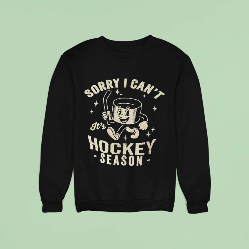 Classic tee, modern twist with Sorry I Can’t It’s Hockey Season Shirt, “Attention all hockey fanatics! If you’re constantly being invited to events and outings but have to decline because it’s hockey season, we have the perfect excuse for you. Introducing the Sorry I Can’t It’s Hockey Season shirt, the ultimate way to show your love for the game.”