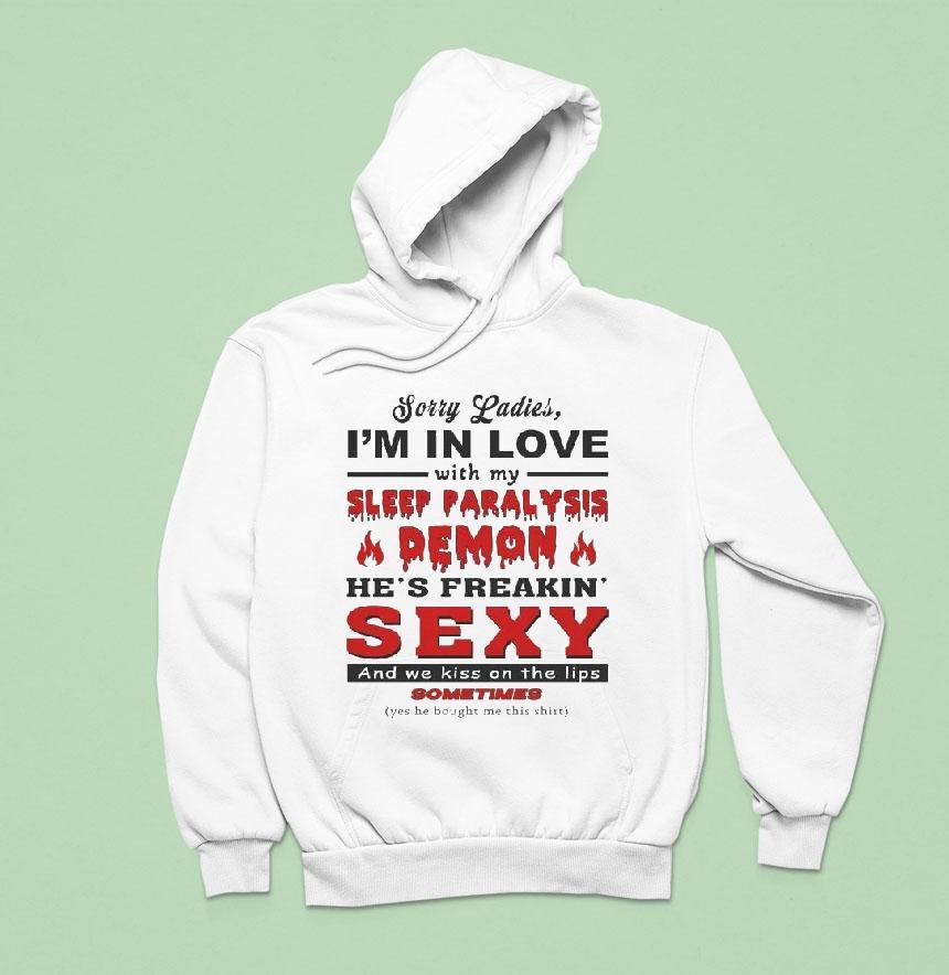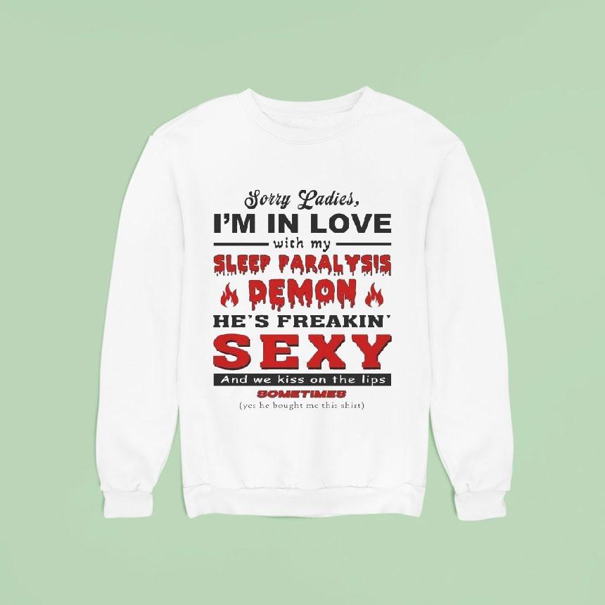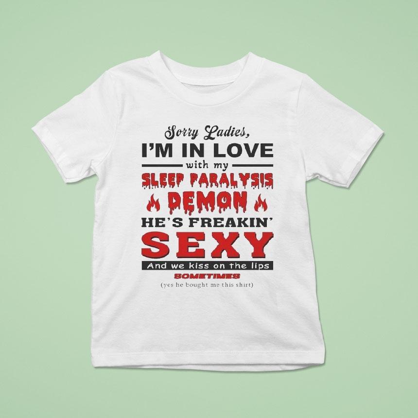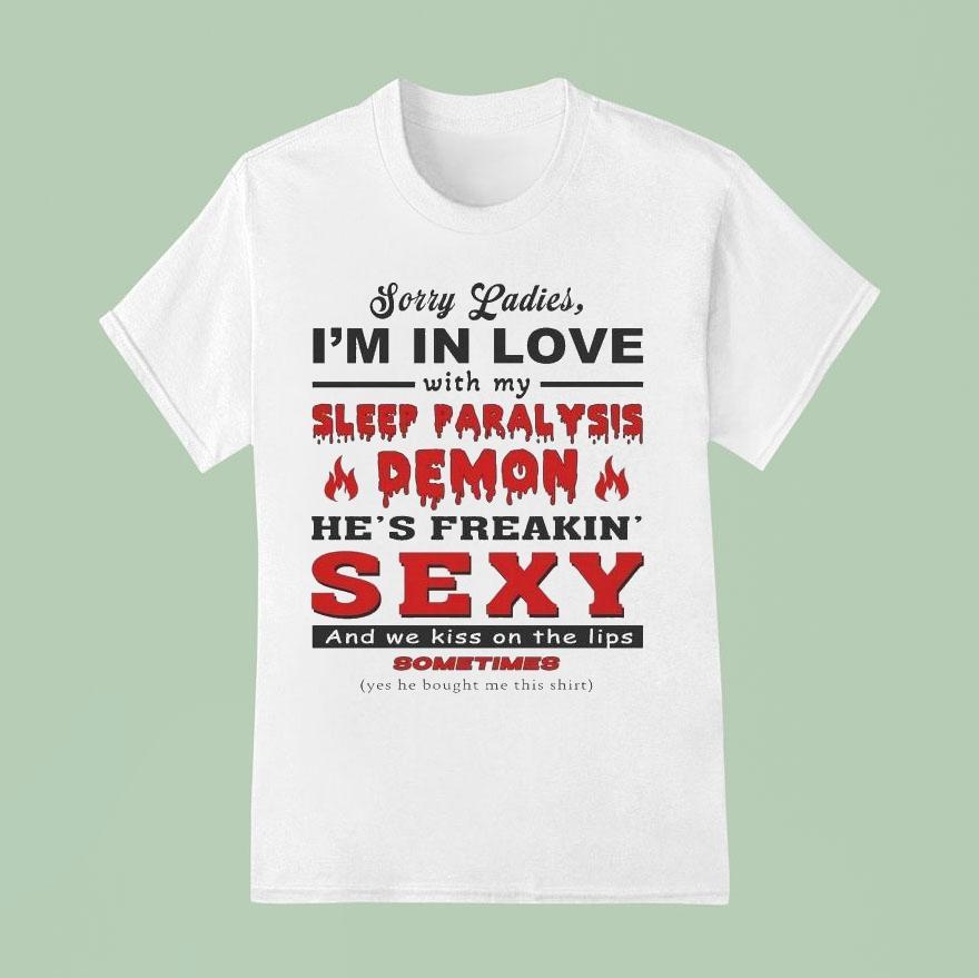 Style that stands out with Sorry Ladies I’m In Love With My Sleep Paralysis Demon He’s Freakin’ Sexy And We Kiss On The Lips Sometimes Shirt, as much as I hate to admit it, my heart belongs to someone – or rather, something – other than a human being. Yes, I have fallen head over heels for my sleep paralysis demon, and our passionate kiss on the lips sometimes is what keeps me going.
