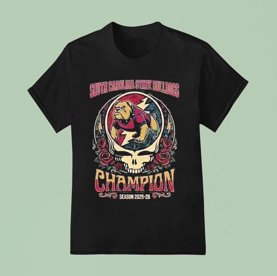 Easy-going style staple with South Carolina State Bulldogs X Grateful Dead Skull Cricket Celebration Bowl Ncaa College Football Season 2025-26 Shirt, the South Carolina State Bulldogs are ready to rock the field in their Grateful Dead Skull Cricket Celebration Bowl Ncaa College Football Season 2025-26 shirts. Get ready to jam out with this unique and bold design as the Bulldogs take on the competition in the upcoming season.