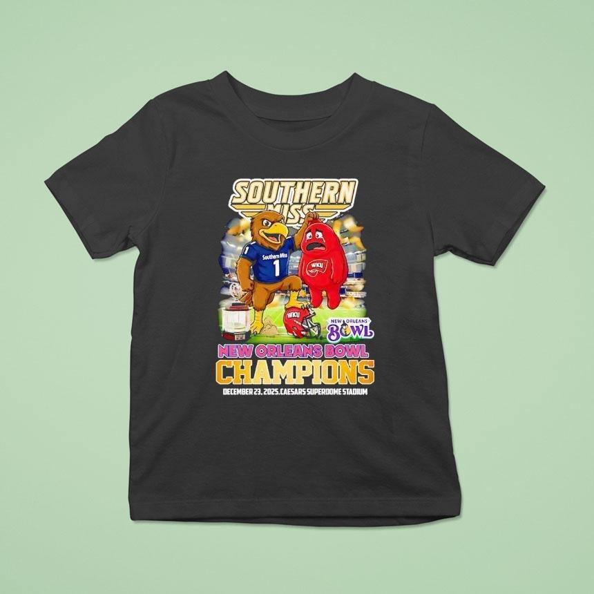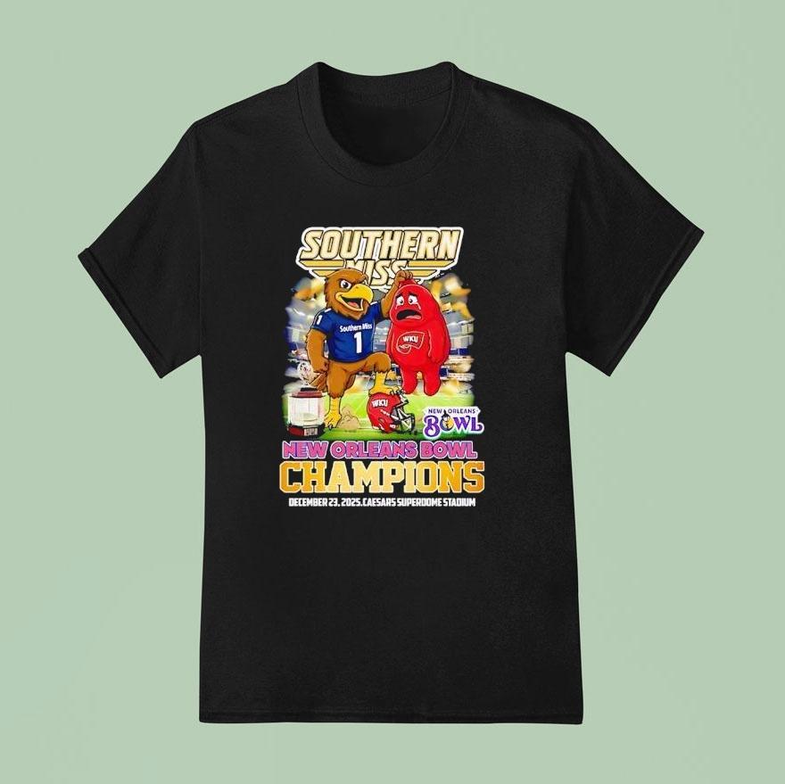 Dress it up or down with Southern Miss New Destroy Washington State Cougars In New Oleans Bowl 2025 Chanpions Shirt, get ready to celebrate, Southern Miss fans! The New Orleans Bowl of 2025 was a legendary showdown as the Golden Eagles dominated the field, annihilating the Washington State Cougars and claiming the title of champions. And you can commemorate this epic victory with the exclusive New Orleans Bowl 2025 champions shirt.