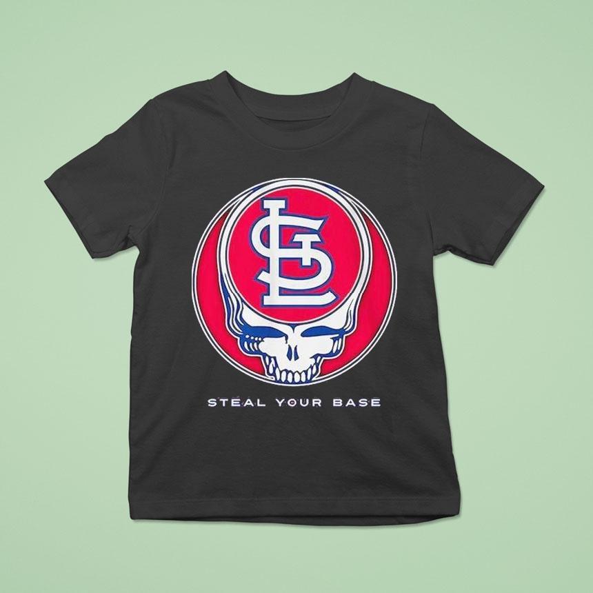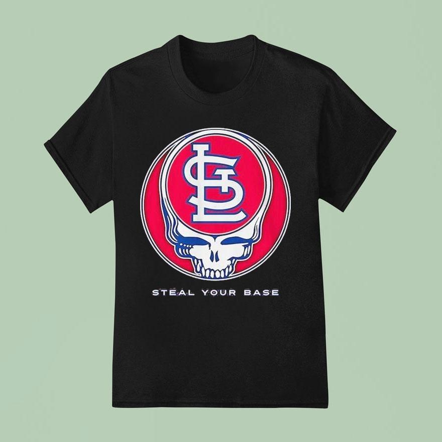 Effortless, everyday style with St. Louis Cardinals Grateful Dead Steal Your Base Shirt, attention all St. Louis Cardinals and Grateful Dead fans! Show off your love for both with the new Steal Your Base shirt. This unique design combines the iconic imagery of the Grateful Dead with the beloved Cardinals baseball team, making it a must-have for any avid fan.