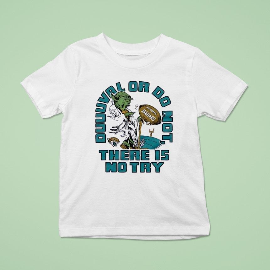 Classic tee, modern twist with Star Wars X Jacksonville Jaguars Yoda Duuval Or Do Not There Is No Try Shirt, the force of football unites in the Star Wars X Jacksonville Jaguars Yoda Duuval Or Do Not There Is No Try Shirt. Embrace the power of the iconic Yoda and the true spirit of “Duuval” as you show your support for the Jaguars on and off the field.