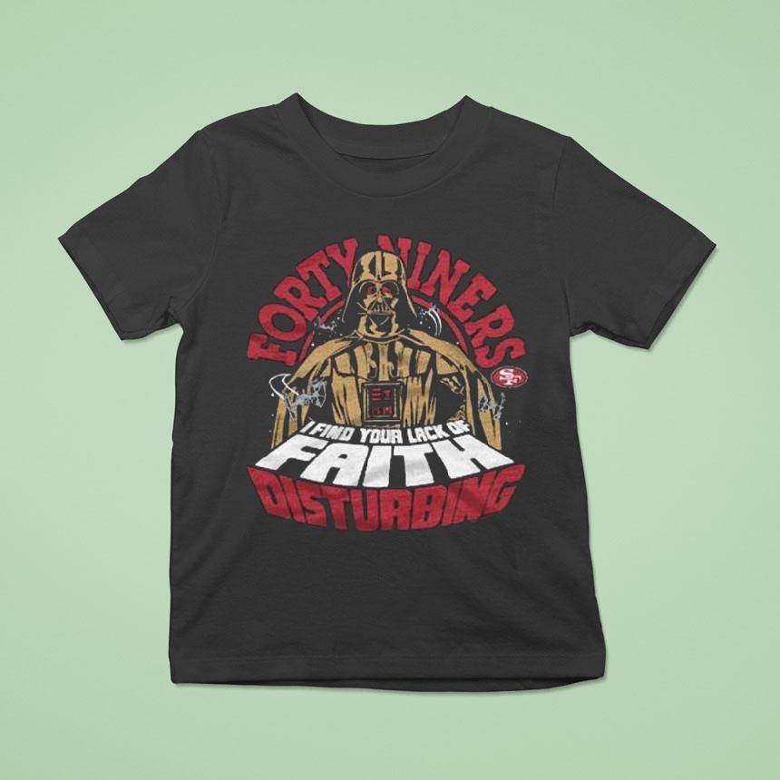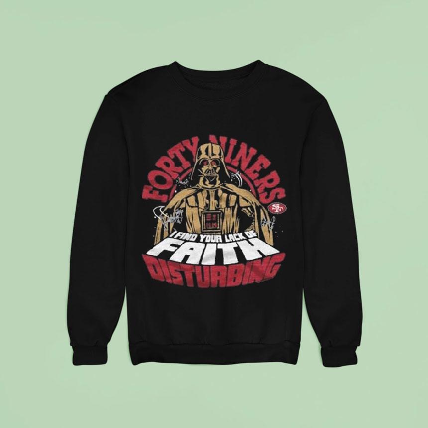 Instant style upgrade with Star Wars X San Francisco 49ers Darth Vader I Find Your Lack Of Faith Disturbing Shirt, get ready for an epic collaboration between two iconic entities: Star Wars and the San Francisco 49ers. This limited edition Darth Vader “I Find Your Lack Of Faith Disturbing” shirt is a must-have for any fan of the dark side and the NFL team. Don’t miss out on this unique mashup!