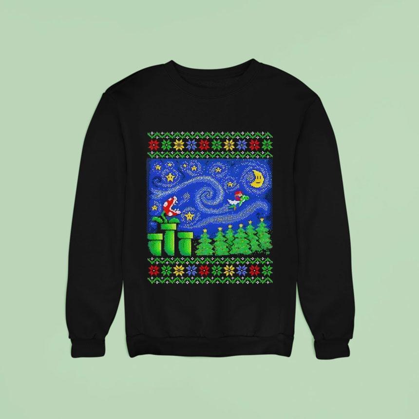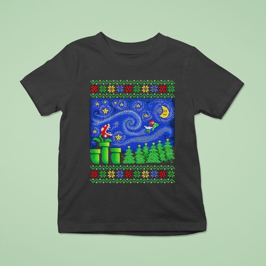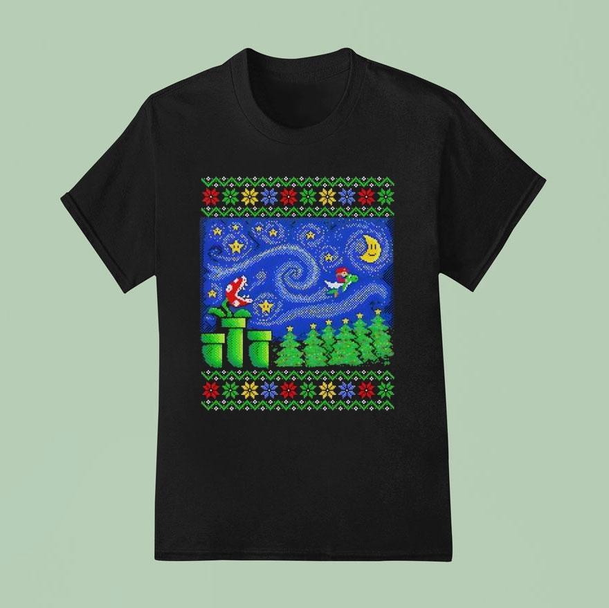 Wardrobe must-have with Starry Christmas Flight Mario And Yoshi In The Style Of Van Gogh’s Starry Night Shirt, get ready to take flight with Mario and Yoshi this Christmas as they soar across a starry sky in the style of Van Gogh’s iconic painting, Starry Night. This unique and festive shirt is the perfect addition to your holiday wardrobe.