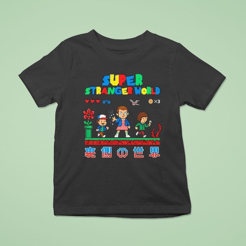 Effortless fashion, endless comfort with Stranger Things In The Style Of Super Mario World Super Stranger World Shirt, step into a dimension where two beloved worlds collide – Stranger Things and Super Mario World! Your favorite characters from the upside down are now pixelated and ready for adventure in our Super Stranger World shirt. Get ready to level up your style and show off your love for both classics.