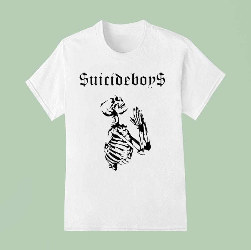 Casual flair, all occasions with Suicideboys Praying Skeleton Shirt, suicideboys Praying Skeleton Shirt is a unique and provocative piece of clothing that has gained popularity among fans of the rap duo Suicideboys. With its striking design featuring a praying skeleton, this shirt has become a symbol of the group’s dark and edgy aesthetic.