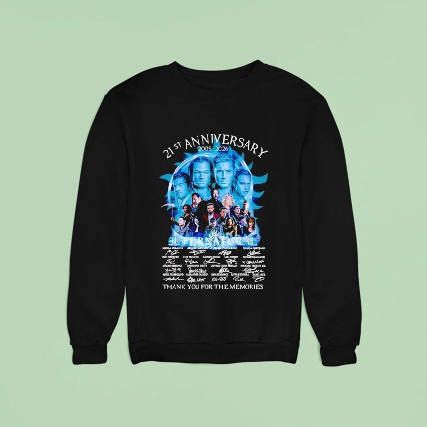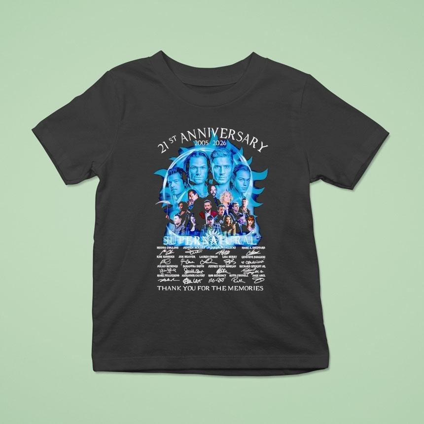 Classic tee, endless possibilities with Supernatural 21st Anniversary 2025 2026 Thank You For The Memories Signatures Shirt, as the year 2025 draws to a close, fans of the hit TV show Supernatural eagerly anticipate the 21st anniversary in 2026. To commemorate this milestone, a limited edition “Thank You For The Memories” signatures shirt is released, stirring up supernatural nostalgia and excitement among the devoted fandom.