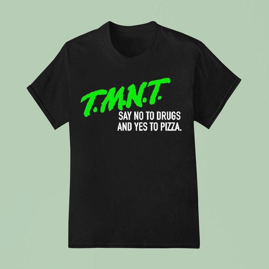 Casual cool, anytime chic with T.m.n.t. Say No To Drugs And Yes To Pizza Shirt, join the Teenage Mutant Ninja Turtles in their mission to promote a healthier lifestyle with their “Say No To Drugs And Yes To Pizza” shirt! Help spread the message of choosing pizza over drugs and support your favorite heroes in a half shell. Cowabunga!