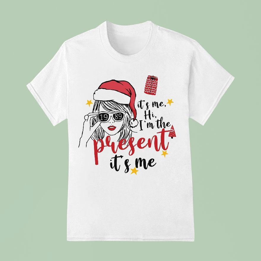 Casual sophistication, always in style with Taylor Swift It’s Me Hi Im The Present It’s Me Christmas Shirt, get ready to spread some holiday cheer with the ultimate gift for the Taylor Swift fan in your life. Introducing the “It’s Me Christmas Shirt”, featuring Taylor’s iconic lyrics and signature style. This is the perfect present to delight any Swiftie this season.
